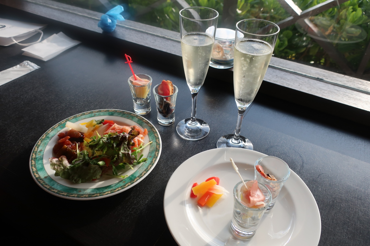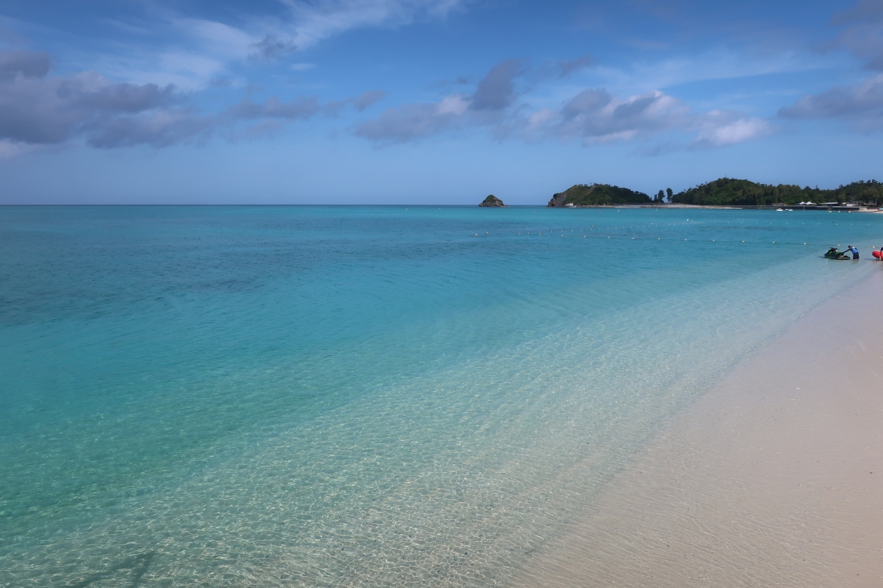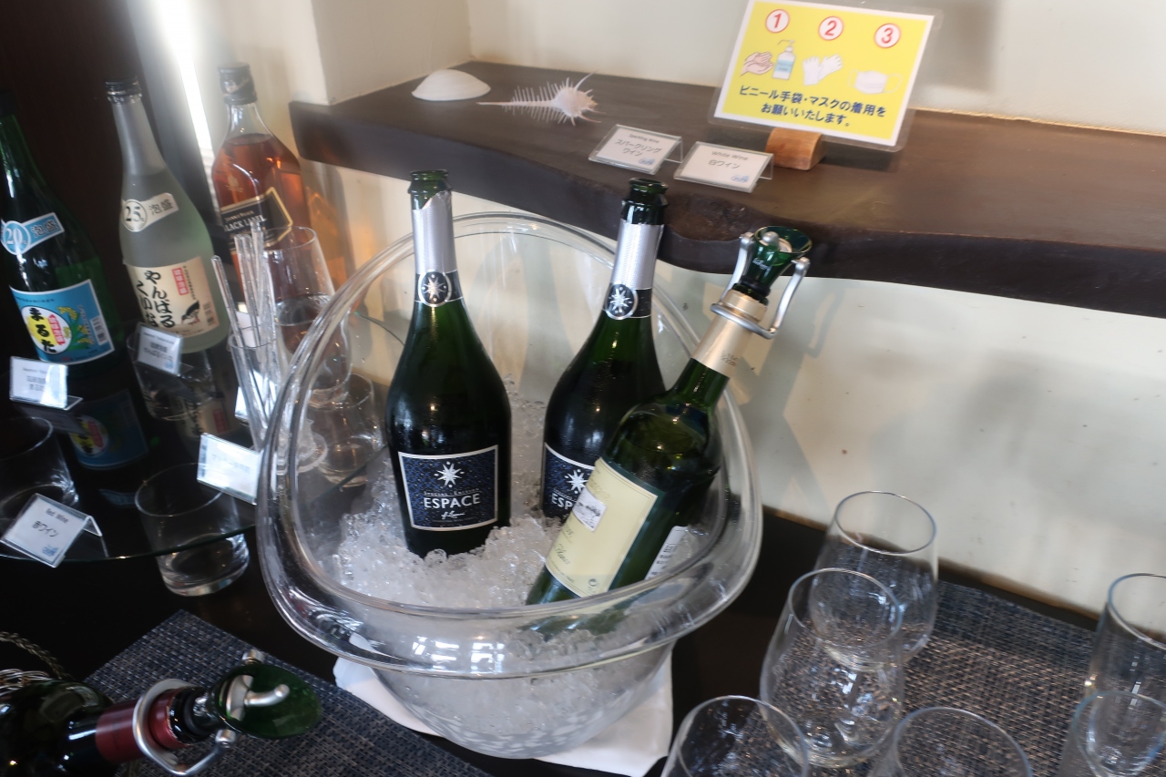 オクマプライベートビーチ&リゾートにあるクラブラウンジです。グランドコテージに宿泊か、クラブラウンジアクセス付プランで利用できます。ラウンジはビーチ前にあり、白い砂、青い海を見ることができます!。サンセットも見られ、その景色は感動できますよ!。ラウンジでは、リラックスタイム(ソフトドリンク)、ティータイム(ソフトドリンク&生ビールと日替わりスイーツ)、カクテルタイム(アルコール、アペタイザー&スイーツ)、バータイム(アルコールなど)があります。スパークリングワインをいただきながら、素晴らしい景色を眺められる、最高の時間が過ごせました。