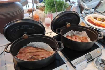 ホテルニューオータニ幕張に宿泊した際、朝食で利用しました。2度目の利用です。朝食はビュッフェスタイル。洋食、和食、中華と様々な料理がありました。コロナ対策で、テーブルに料理を盛り付けるプレートがあらかじめ用意されています。トングも一つの料理を取る度に新しいものを利用します。しっかり対策されており、安心して利用できます。どの料理も美味しく、朝から満足できました。エッグコーナーでは、スタッフが卵料理を調理してくれます。出来立てがいただけるのは嬉しいですね。
