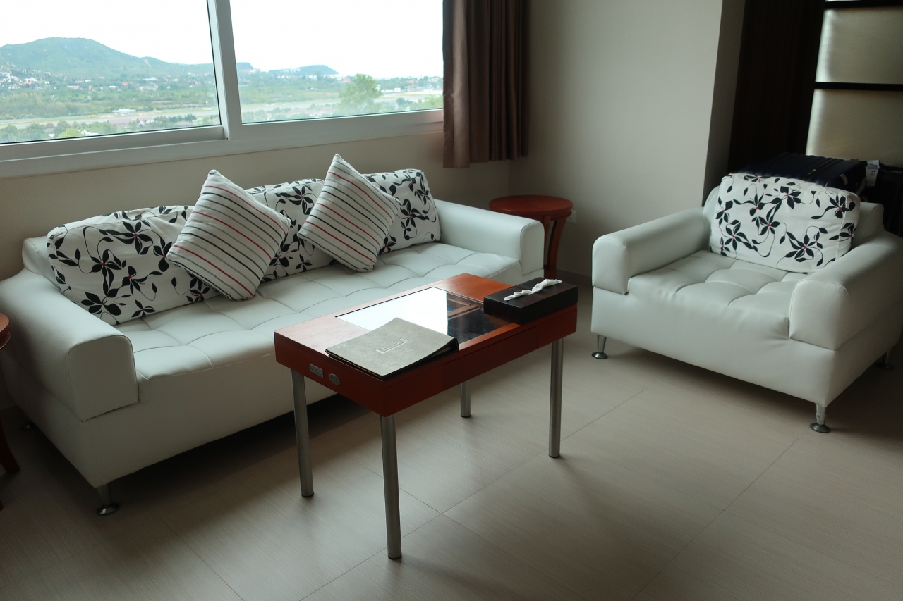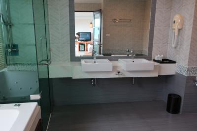 翌日の早朝便のために空港近くのこちらのホテルに宿泊しました。タクシーで到着後、結構な階段をスーツケースを持って上らなくてはならなかったのが大変でした。スタッフの対応は、フレンドリーな方もいれば、素っ気ない方もいます。客室は、ガーデンマウンテンビューを予約。部屋からはサムイ空港、飛行機の離着陸が見ることができ楽しめました。カテゴリーが一番下でも50㎡あり、ソファもあるので寛げます。バスルームはシャワーとバスタブが別。あまりにも広いので驚くほどでした。アメニティは、シャンプーとボディジェルのみなので、歯ブラシやコンディショナーは持参した方がよいかと思います。レストラン、プール、ジム、スパがあり、レストランを利用。オープンエアのレストランなので、蚊に刺されないように注意が必要です。私はいくつも刺されてしましましたが(涙)。レストランのスタッフはみんなフレンドリーで対応は良いです♪。空港までは車で10分程。前日に予約をしておいた方が良いです。400バーツでした。また、セントラルフェスティバルまでは、ホテルから350バーツでした。
