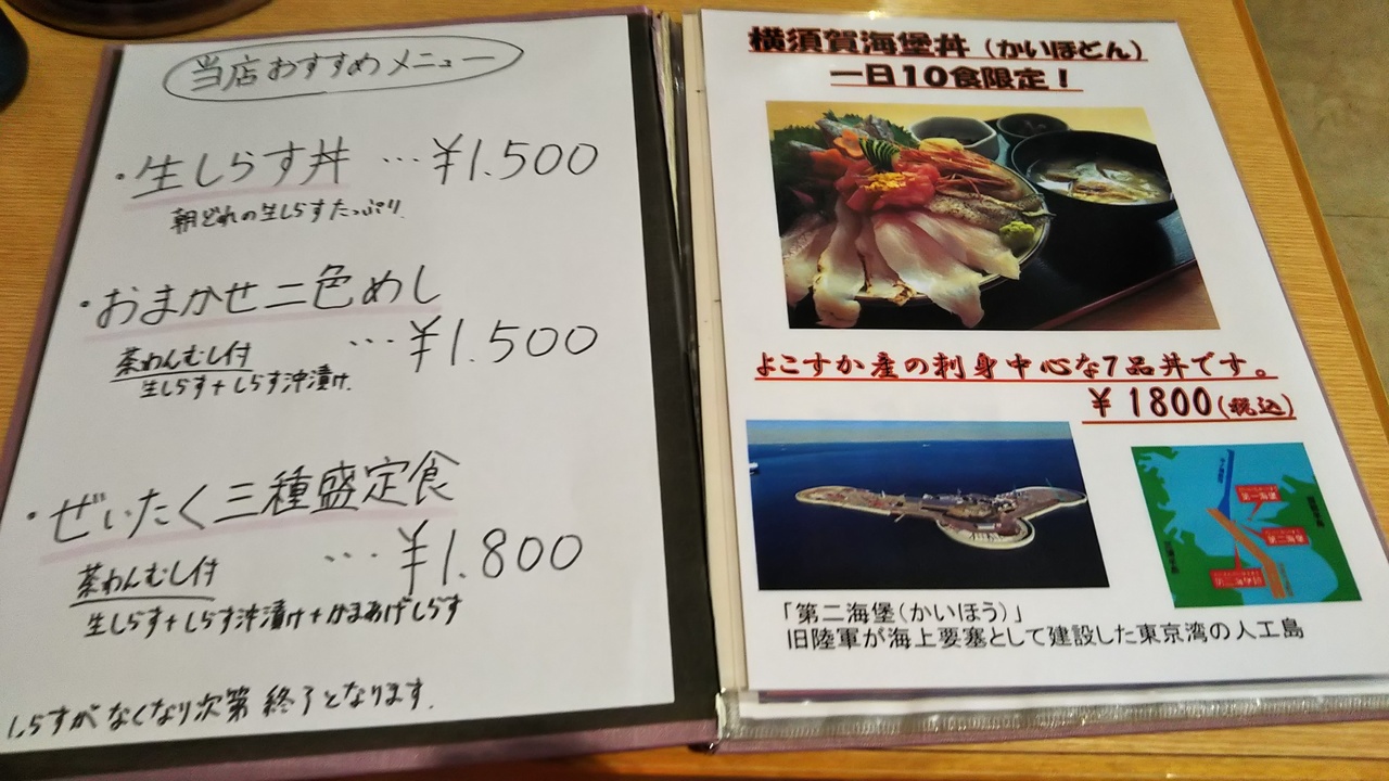 よこすかポートマーケットにある海鮮レストラン。訪れた時は、ちょうど団体客がいて、満席でしたが、15分ほど待っていると一気に空き、食事をゆっくりいただくことができました。はとバスツアーのランチだったようです。ぜいたく3種盛定食(生しらす、沖漬けしらす、釜揚げしらす)と海堡丼(限定10食)を頂きましたが、どちらも新鮮でめちゃくちゃ美味しい!。特に生しらすは最高でした♪。また、ボリュームも凄すぎ(驚)。ご飯は、少なめ、普通、大盛りから選べます。オススメのレストランです。