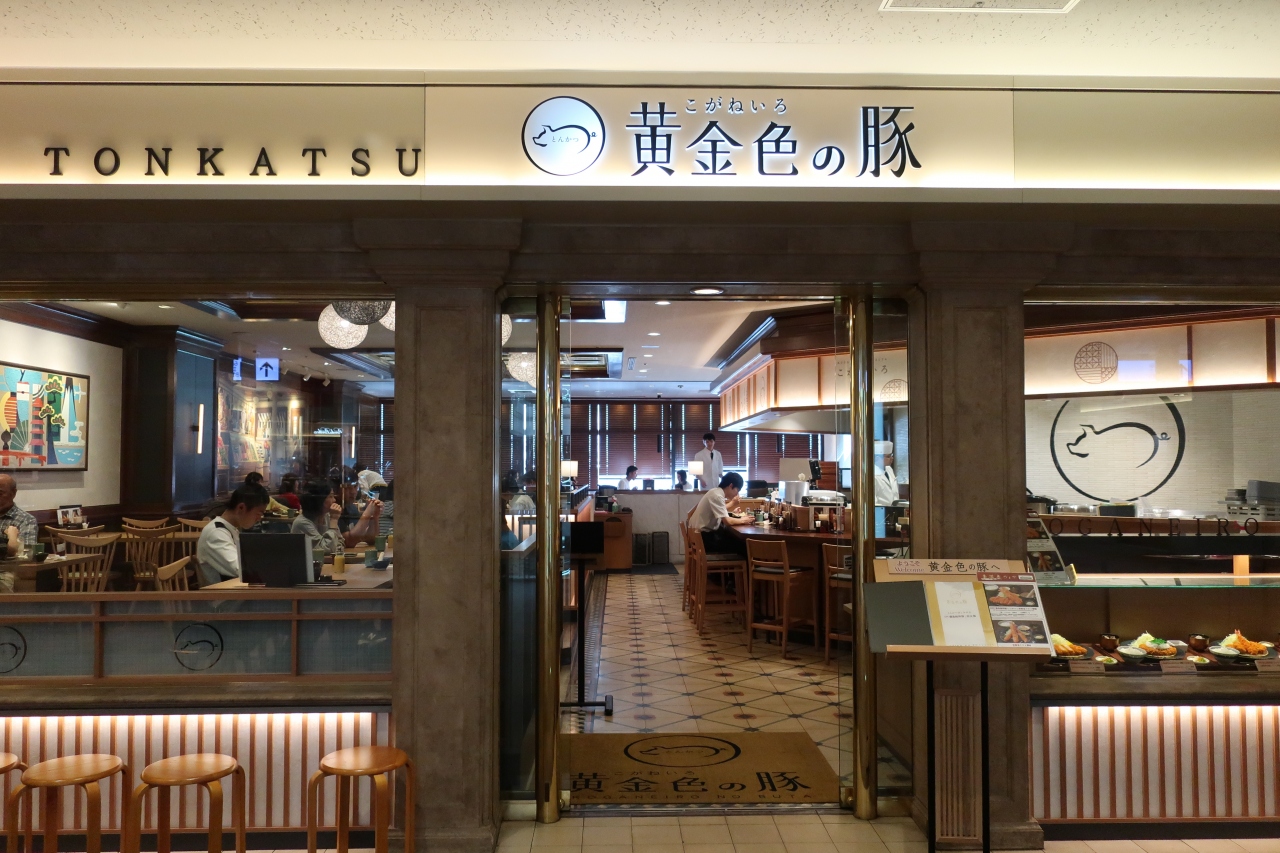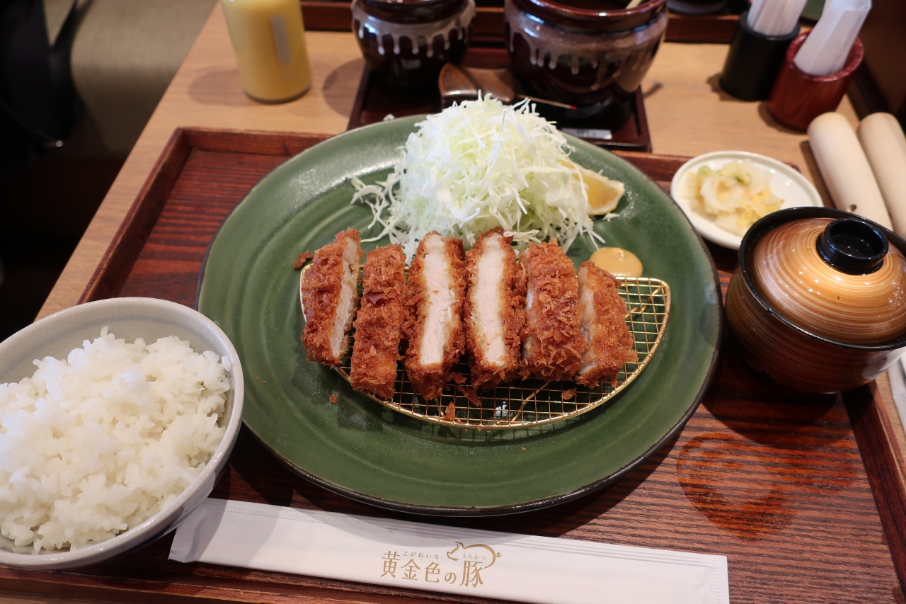 羽田空港第一ターミナルの4階にありました。黄金色の豚というネーミングに惹かれて入店しちゃいました。SPF霧島純粋豚のロースかつ御膳と四元豚のロースかつ御膳を注文しましたが、霧島豚の方が、柔らかく、ジューシーでした。脂もおいしくいただきました。ソースは甘口と辛口がありましたが、私は甘口の方がおすすめです。ドロッとした感じがお気に入り。ごはんとキャベツはお替り自由。また、ドレッシングがコーンドレッシング。初めてコーンドレッシングで食べてみましたが、コーン風味でさっぱり。とてもおいしくいただけました。