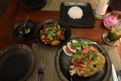 シラヴァディーホテル内にあるタイ料理レストランです。ディナーのみの営業でした。レストランは、テラス席、屋内席があります。海を眺めながらディナーをいただくことができます。とてもお洒落な雰囲気で、静かにゆったり食事することができました。メニューは、辛い料理には唐辛子マークが記してあるので、辛いのが苦手な方にはありがたいです。今回は、それほどお腹が空いていなかったため、メイン2品だけでしたが、スタッフは嫌な顔をせず、シェアさせていただけました。鶏肉のカシューナッツ炒めと、パイナップルチャーハンをオーダー。鶏肉の方は、しっかりした味付けで、スチームライスと一緒にいただくと、とてもおいしかったです。パイナップルチャーハンは、まろやかで、大好きな味でした。また、機会があれば利用したいレストランです。