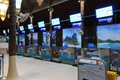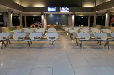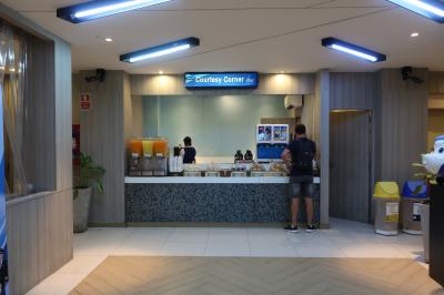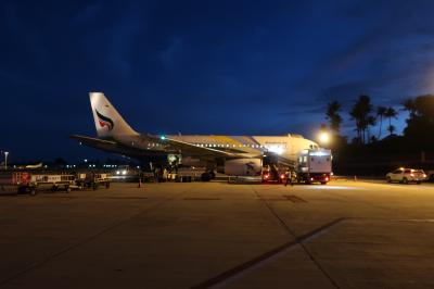 サムイ島の玄関口です。着陸後、タラップを降りてオープンバス?トラム?に乗って空港内へ。空港と言っても、現代的ではなくローカルな感じでのんびりした雰囲気です。小さな空港なので、迷うこともありません。復路では、チェックイン時に少し並びます。また、バンコク乗り継ぎで日本へ帰国でも、国際線レーンへ進みます。出国審査を受けました。もちろんバゲッジスルーでしたよ!。搭乗ゲートの待合エリアには、ドリンクやフードが提供されています。サービスがすごいです♪。