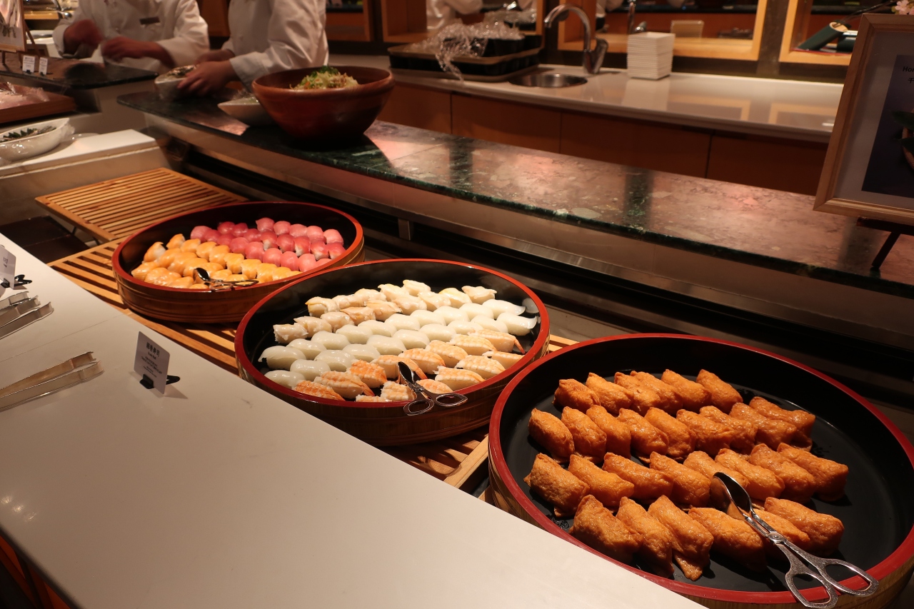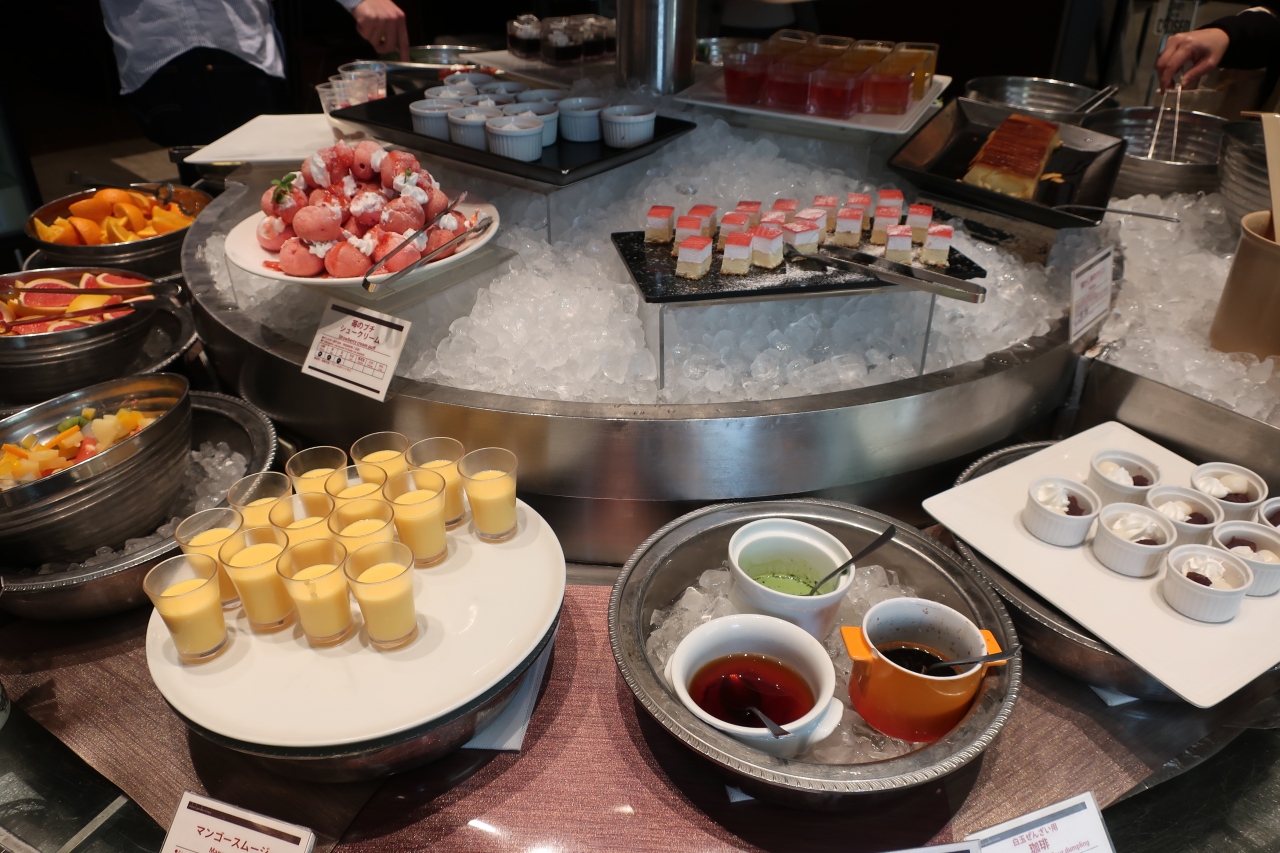 ディナーで利用しました。アジア料理がメインのビュッフェで、点心、お寿司、インド料理、フォーステーション、シンガポール料理などがありました。そのほかに、ローストビーフやパスタなどもあります。また、デザートの種類が豊富。どのデザートもおいしくいただけました。種類は多いとは言えませんが、どの料理も美味しく、人気があるのがわかります。時間制限もないので、ゆっくり食事ができました。ちなみに、ドリンクメニューは別になります。アルコール飲み放題、ソフトドリンク飲み放題など、色々なメニューがありました。