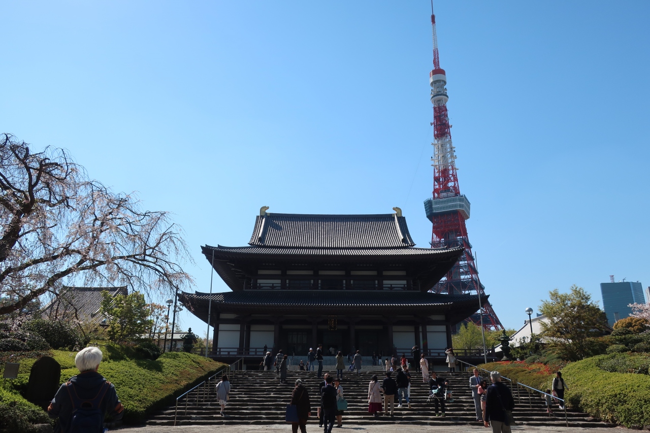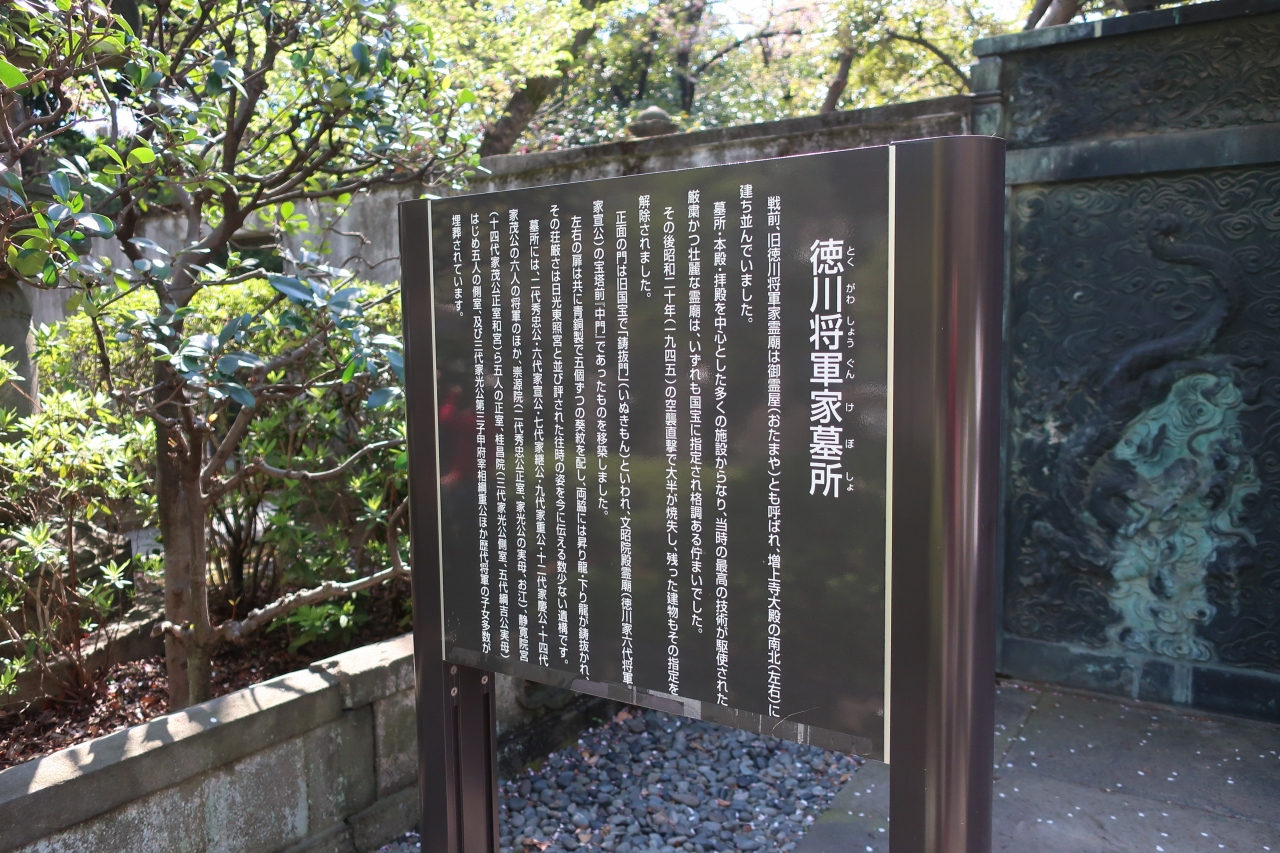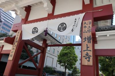 増上寺境内にありました。徳川家の菩提寺として、6人の将軍と正室、側室などの墓所があります。中へ入るには拝観料がかかりますので、今回は「徳川将軍家墓所 鋳抜門」のみ見学しました。頑丈な門に、徳川家の葵紋が各5つ。重厚感があり、見ごたえがありました。