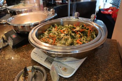 朝食で利用しました。日曜日だったからか、いつもなのかはわかりませんが、非常に混雑していました。9:30頃にやっと空いてきたような気がします。なので、席に着くまでは並びました。レストランはビュッフェ形式です。沖縄料理コーナー、和食、洋食、中華と種類は豊富です。料理はおいしいかったですよ♪。