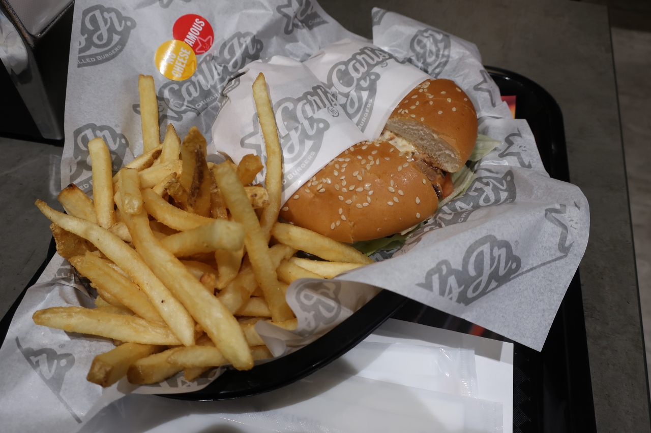 ダイバーシティ東京に入っています。カールスジュニアのフェイマススターが大好きで、日本で食べられるなんて最高です!。今回は、お腹がいっぱいだったこともあり、ハンバーガーをシェアしたのですが、オーダー時に半分にカットをお願いしたところ、食べやすいように半分ずつをシートに包んでくれてました。また、次回行くのが楽しみです。