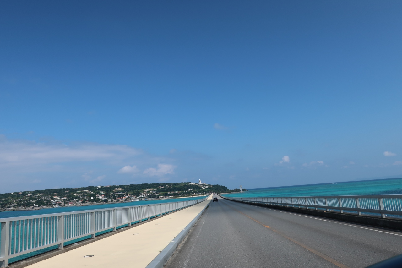 沖縄の絶景の一つだと思います。古宇利島へつながる橋で、美しい海に囲まれ、その海の上をまっすぐに通っています。天気が良いと、よりその素晴らしい景色を堪能できます。車で渡りましたが、天気も良く絶景を満喫できました。ちなみに、歩いて渡ることもできますよ。約2キロほどありますが・・・。