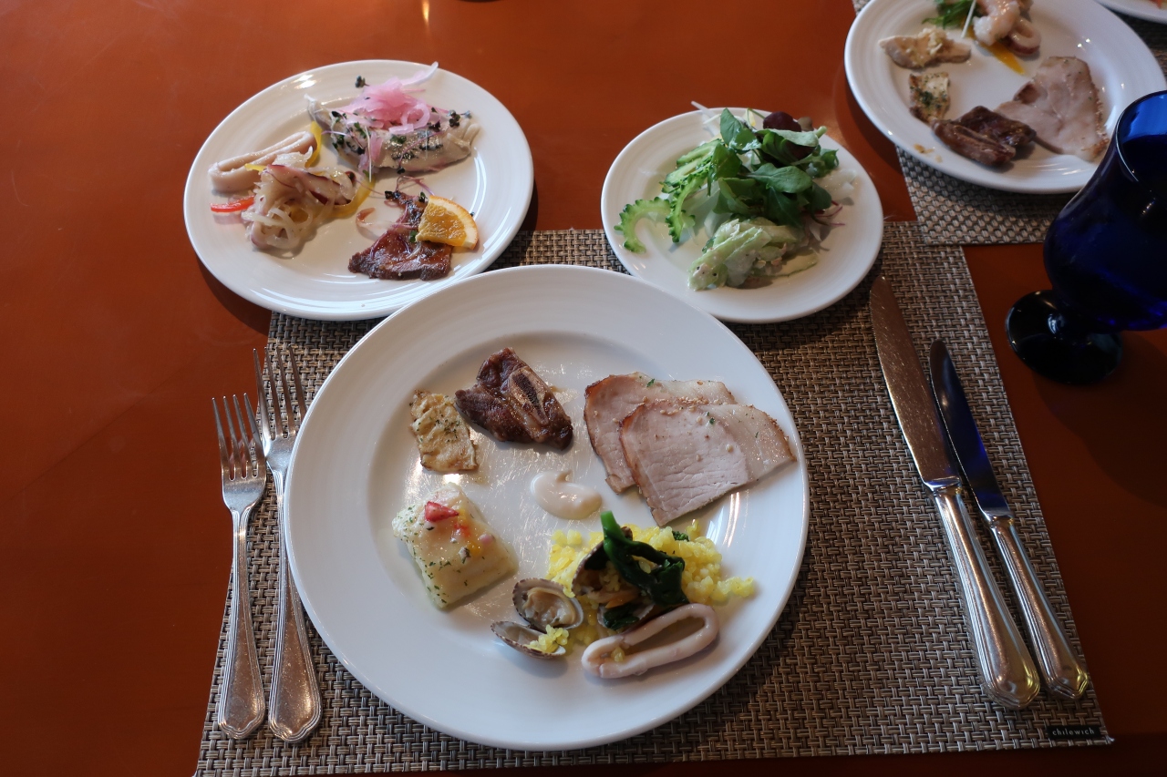 ディナーと朝食で利用しました。ザ・ブセナテラス2階にあるレストランです。朝食はビュッフェだけですが、ディナーはビュッフェかアラカルトメニューを選ぶことができます。今回は、どちらもビュッフェをいただきました。ディナーは、ライブキッチンがあり、出来立てのパスタやビーフシチューを熱々でいただけました。また、お肉料理、シーフードなど種類は豊富。楽しめました。朝食では、エッグステーションがあり、オムレツを作っていただけます。こちらのレストランは、テラス席が人気です。朝食時は8時過ぎだとテラス席は満席でした。素晴らしい景色を眺めながらの食事は、よりおいしく感じますよね♪。