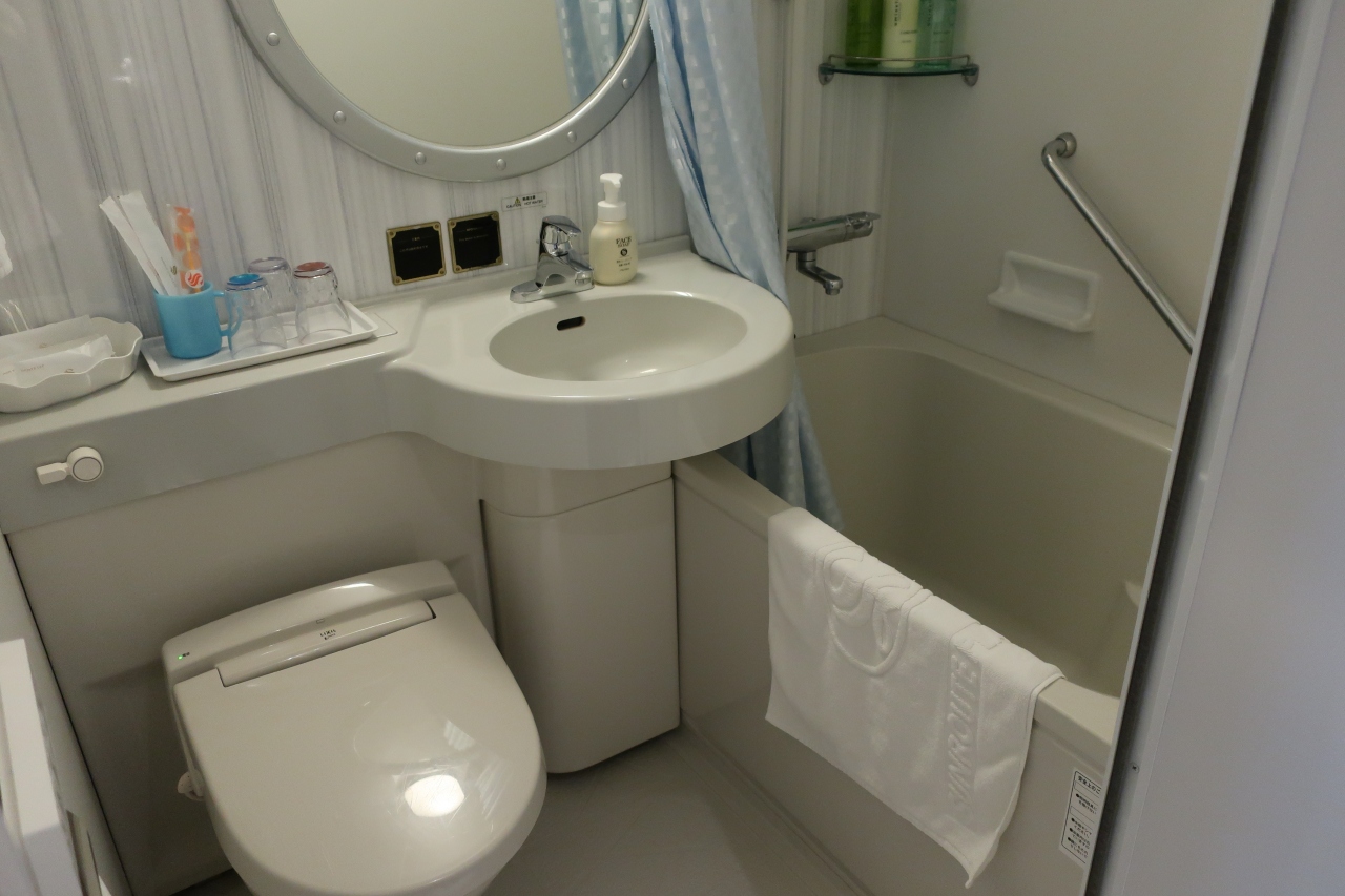 サンルートプラザ東京には、以前も宿泊したことはありますが、今回は「クルージング キャビン」というルームに宿泊しました。エレベーターに乗った瞬間から、大型客船にいるような雰囲気で、驚きました。客室は、コンセプト通りで、本物の救命胴衣があったり、むき出しの配管があったりと興味深かったです。バスルームもコンパクト。驚いたのは、トイレが小さいような・・・。楽しむことのできるルームでした。