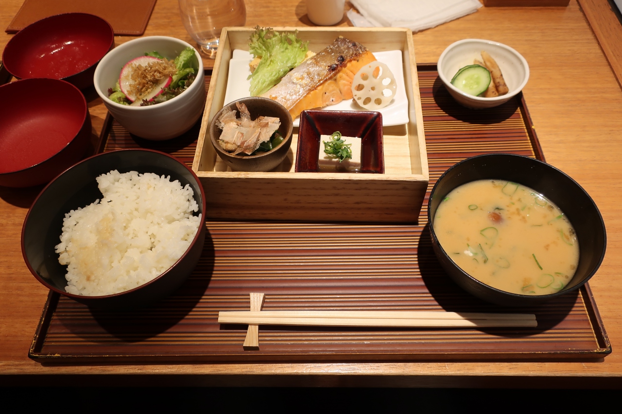 羽田空港第1ターミナル2階にあるレストラン。朝食で利用しました。朝ごはんメニューは2種類。鮭膳と白粥です。私は、鮭膳をいただきました。朝ごはんにしては、少し高めの料金ですが、どの料理もおいしく満足です。メインの鮭は、脂がのっていて柔らかく、非常においしかったです。また、着席すると、お水と一緒に出汁も出していただけます。これが、おいしい~。人気があるレストランのようで、席はすぐにいっぱいに。ちなみに、こちらのレストランは、カウンター席のみです。朝から、贅沢な朝食がいただけて、気分もアップしました。