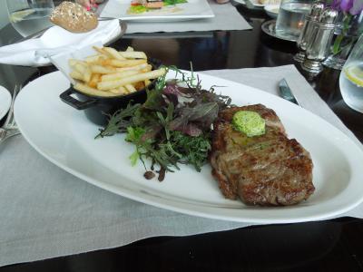 ランチで行きました。熟成肉が食べたかったで、単品からオーダー。Tボーンステーキは2人では多すぎと思ったので、ニューヨークステーキをオーダー。サイドメニューでシーザーサラダとマッシュポテト。ステーキはジュワーとお肉のうまみが出て、柔らかく最高!。こんなにおいしいお肉は初めてと思えるほどです。