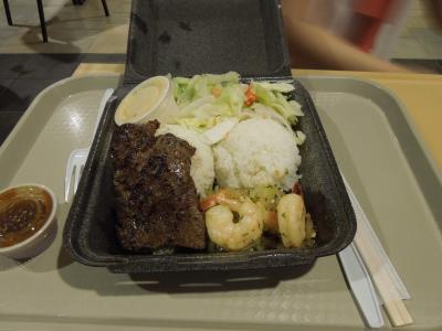 ロイヤルハワイアンセンター内のフードコートにチャンピオンステーキが入ってます。ステーキとガーリックシュリンプのコンボを注文。ステーキは若干かため。ソースは美味しいです。ガーリックシュリンプは気に入りました。結構ボリュームあります。