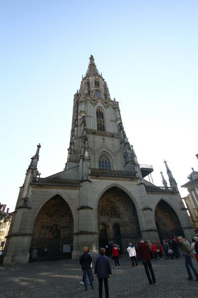 時計塔から歩くこと7分でベルン大聖堂!迫力満点!人だかりができていまし...