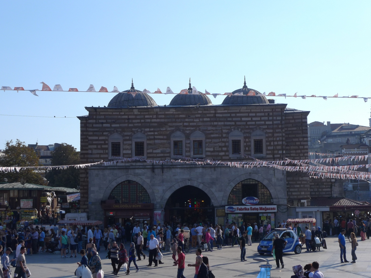 サバサンドを売っている船のある桟橋から距離的には近いのですが、道路を渡るのに苦労しました。モスクのすぐそばで、入り口もすぐに分かりましたが、とにかく驚く程の混雑で、まさに人・人・人・・・。東京の通勤電車の中みたいでした。グランドバザールは観光客だらけなので、むしろこっちをおすすめする、と聞いてきたのですが、こちらもとてもゆっくりと品物を見て回るといった雰囲気ではありませんでした。9月の平日の午後だったのですが、時間帯が悪かったのでしょうか。