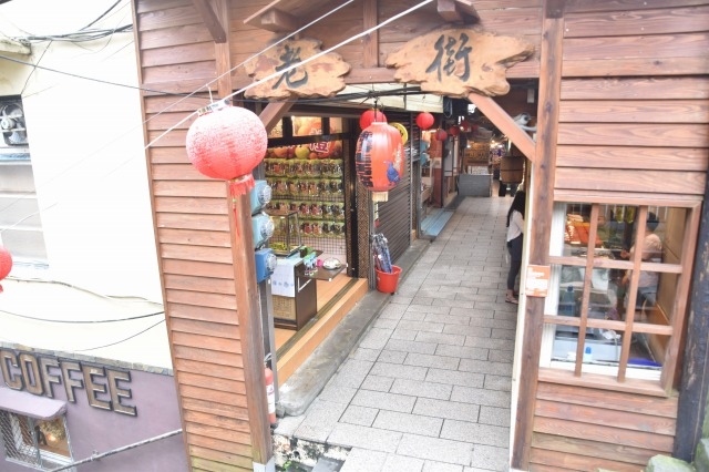 その名も「百年老老街」。その街並みの風情は歴史を感じさせ、これこそ老街というべき古い町並みだった。店の数は当時より減ったそうだが、百年の歴史をもつ金茂雑貨店は健在で、阿里山コーヒー(180元)などを出すカフェになっていた。
