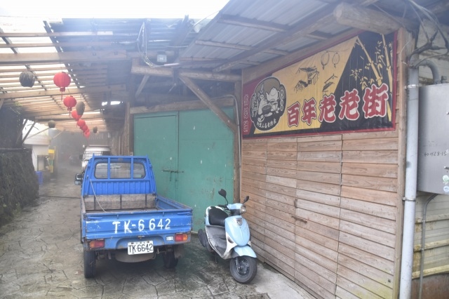 阿里山森林鉄道の奮起湖駅から直接のびていた。いわば商店街だが、その風情から「老街」と名付けられている。みやげもの、お菓子など食べ物を売る店が並ぶ。