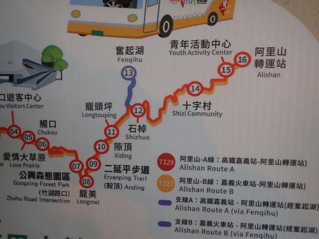 以前は森林鉄道で行くことができた阿里山だが、台風被害による不通区間が続いていて、代わりに路線バスが走るようになって、そのバスターミナルだ。