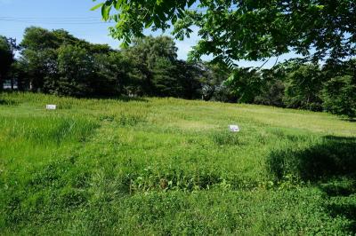 是川縄文館から歩いて2,3分の場所にあります。世界遺産登録を受け、今後、史跡公園として整備されるそうです。そのため、2022年7月現在、立入禁止となっていまが、外から草に覆われた姿を眺めることは出来ます。そこは、これ是川遺跡の内、中居遺跡と呼ばれるところです。遺跡の石碑が建つ一王子遺跡は、そこから離れた場所にあります。もうひとつの堀田遺跡は、縄文学習館の北側に位置しています。ちなみに、合掌土偶が発掘された風張1遺跡は、新井田川を挟んだ東側の対岸にあります。