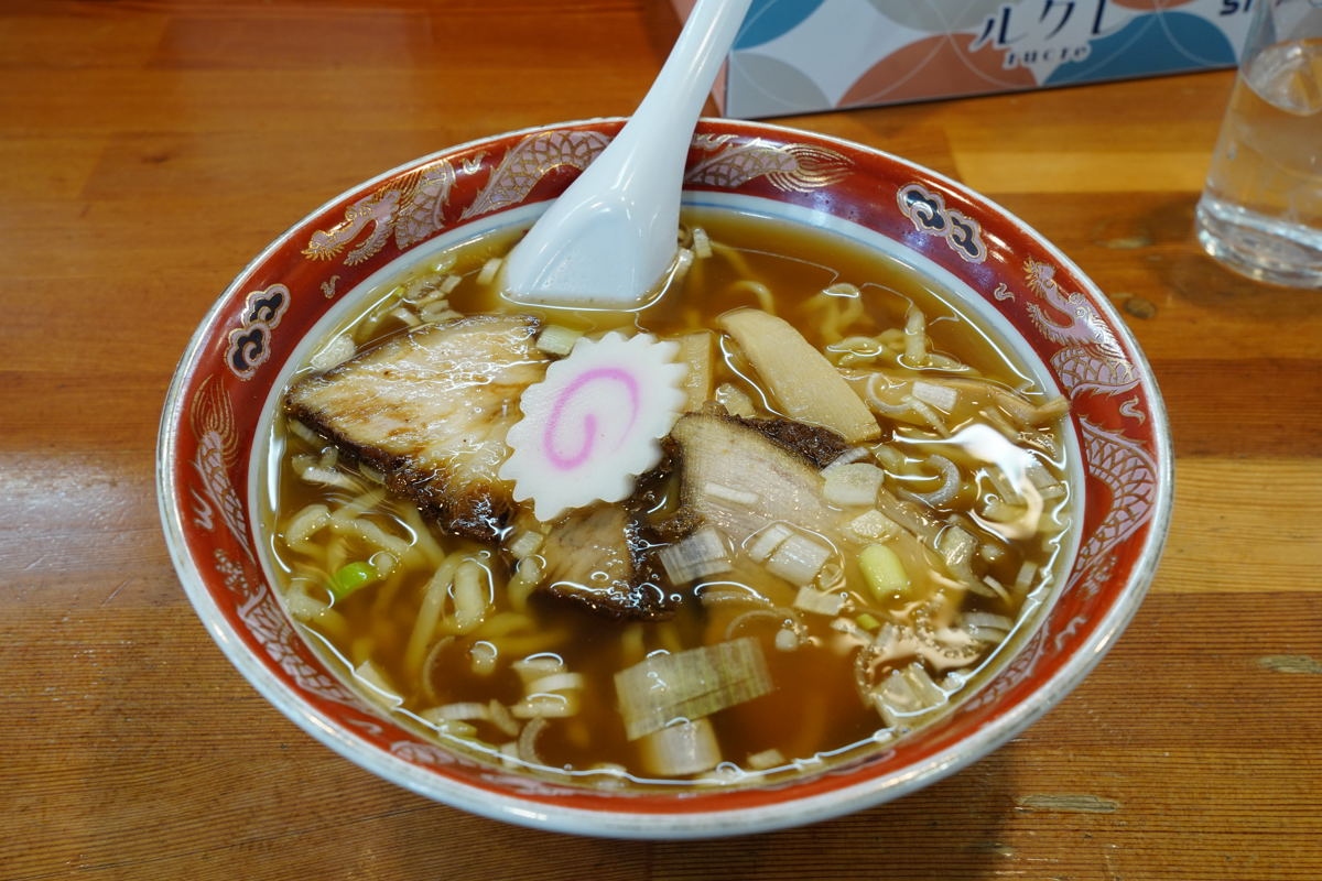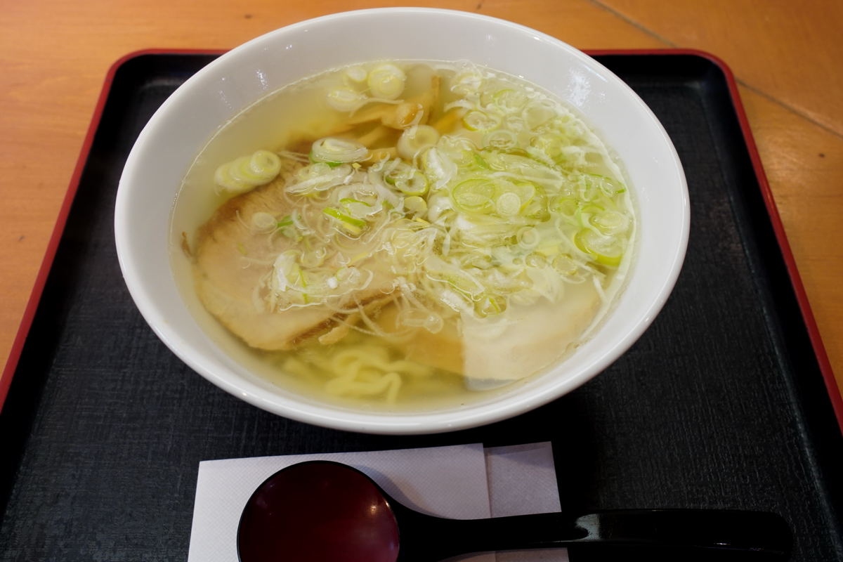 会津若松駅構内にあるラーメン屋です。会津特産の山塩を使った会津山塩ラーメンが看板。透き通ったスープは、あっさりとした優しい味わいでした。叉焼は2枚入っていて、結構肉厚でしたが柔らかかったです。他にチャーシュー麺もあります。ヒレカツソースカツ丼、ヒレカツ定食もありました。改札口からすぐの場所にあるので、列車の待ち合わせ時間を利用して立ち寄るのに便利です。