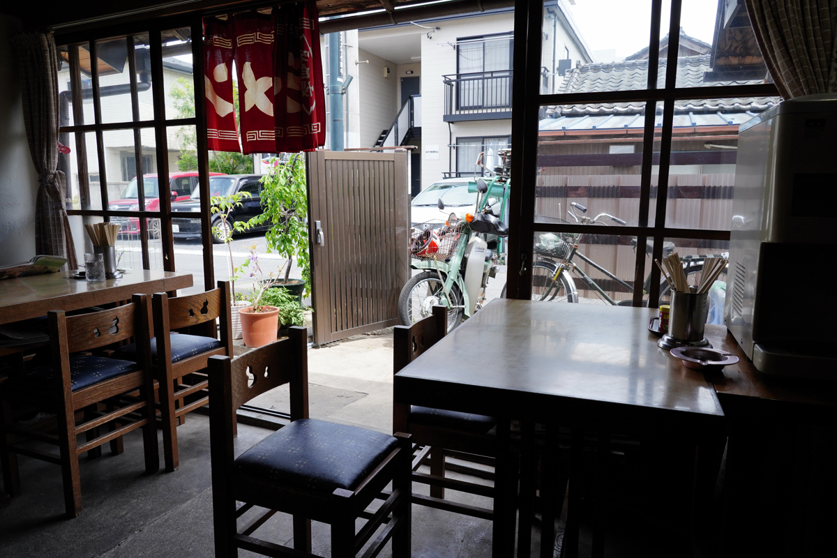 蕎麦の暖簾が掛かっている引き戸は入口ではなく、ラーメンの暖簾が掛かった硝子戸から入るのも面白い。