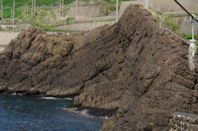 あつみ温泉駅と五十川駅の間の海岸線にある、塩を詰めた俵が積み重なったように見える柱状節理です。