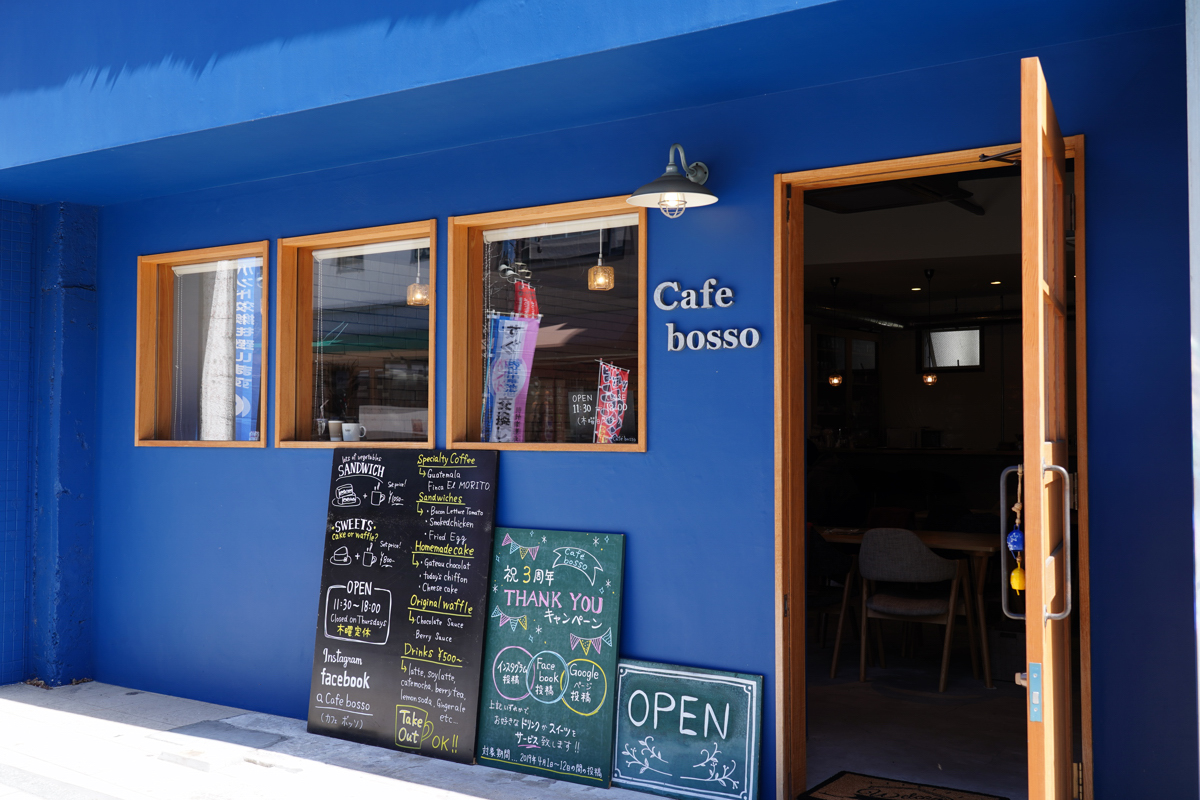 上田駅から歩いて3分ほどのところにある青い壁が印象的なカフェ。