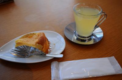注文したのは、地元産のりんごを使ったジュースとベイクドチーズケーキ。