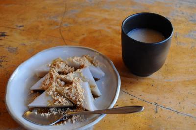 久寿餅と冬季限定の甘酒をいただきましたが、久寿餅はもちろんのこと、甘酒がとても美味しかったです。