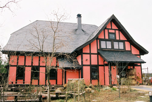 建物は、ドイツ人建築家により、上越にあった築200年以上の古い民家(廃寺?)の部材と、伝統的なドイツの建材を融合させて建てたものです。