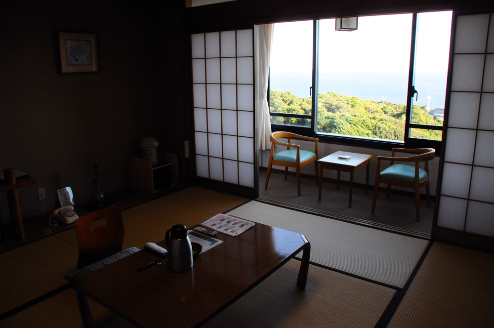 窓側の席からは、太平洋と足摺岬灯台が望めました。