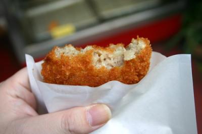 本郷界隈を散策していて偶然見つけたお肉屋さんのコロッケです。