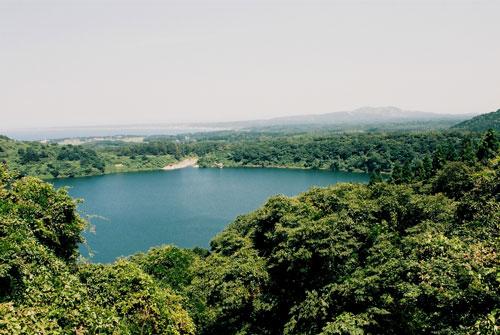 展望台からは、世界的にも珍しい「マール」と言う、噴火の後の爆裂火口に地下水が溜まって出来た火山湖を見ることができる。