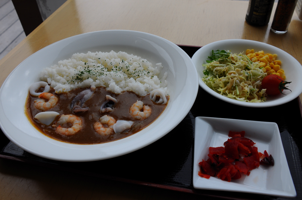 メニューは、男鹿しょっつる焼きそばやシーフードカレー、とんかつ、丼ものなど。