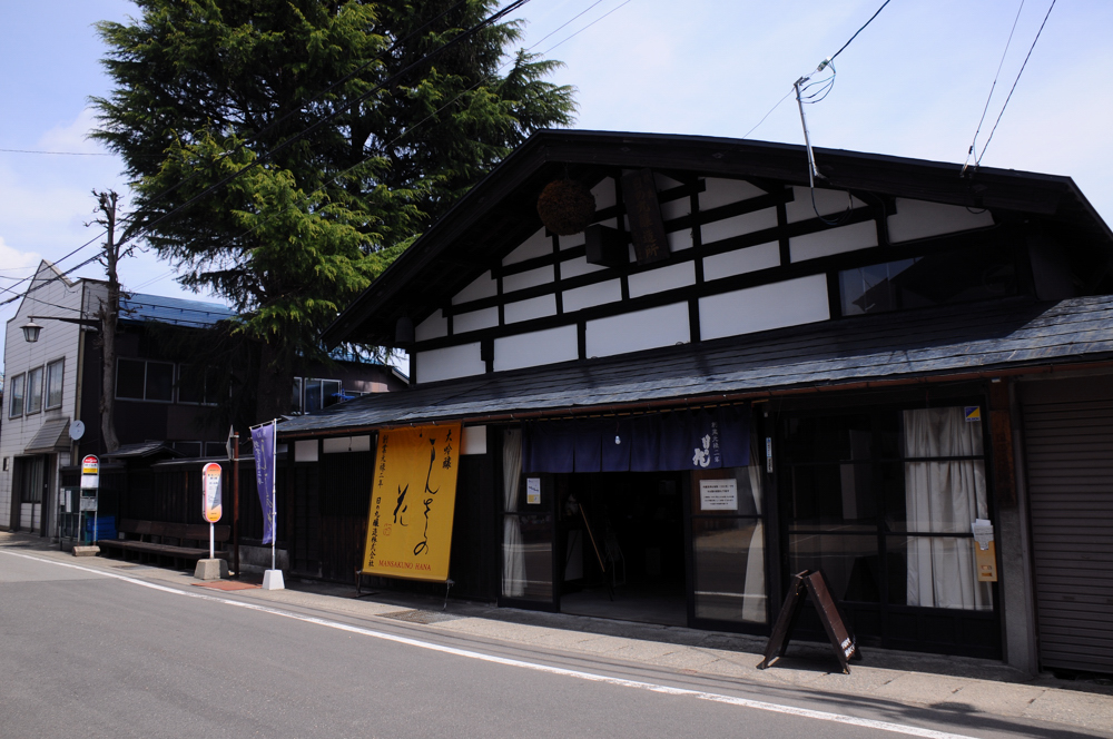 増田朝市通りの南角にある平成15年まで酒を醸していた勇駒酒造の建物を利用した食事処です。