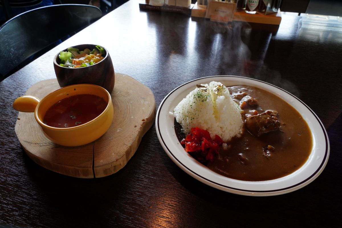 佐渡金山の北沢地区にある軽食喫茶です。建物は俄か作りのようですが、店内は洗練されていて小奇麗でした。飲み物が主体ですが、ハンバーグやカレーパスタなどもあります。佐渡島黒豚金山カレーを食べてみましたが、肉も柔らかくて美味しかったです。そのご飯は、道遊の割戸のように盛り付けられ、金箔が載っていました。窓際の席に座れば、北沢浮遊選鉱場などを観ながら寛げます。