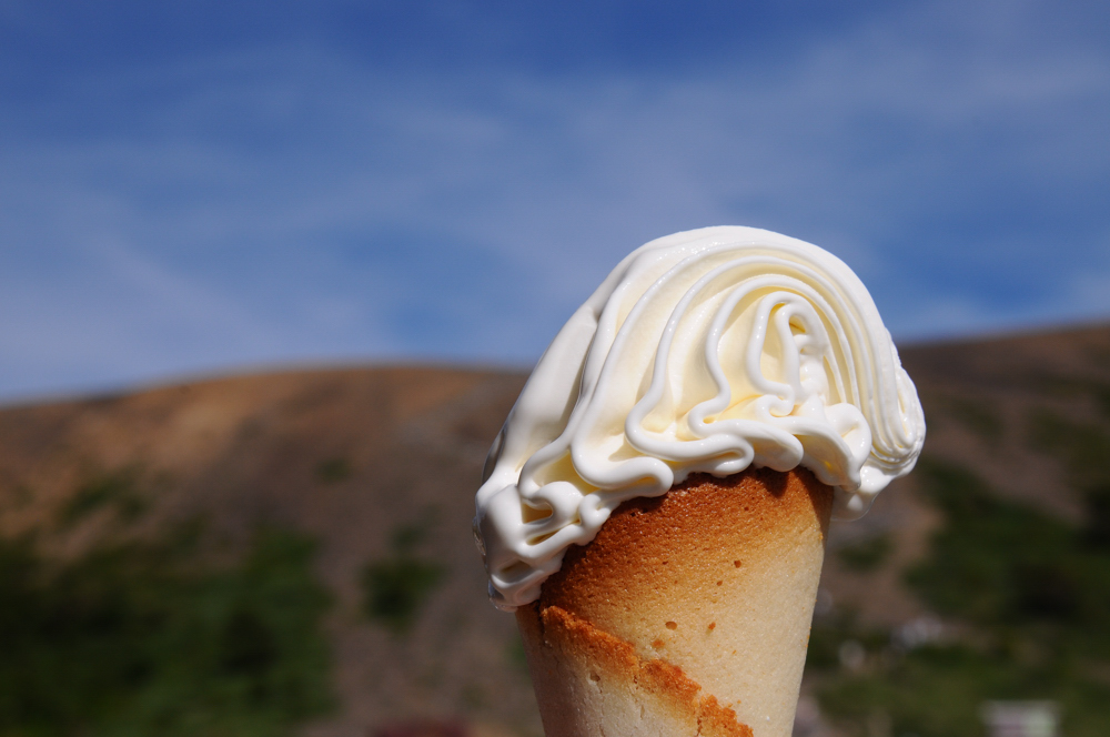 軽食コーナーには、生クリームを使用したプレミアムソフトクリーム(500円)がありました。