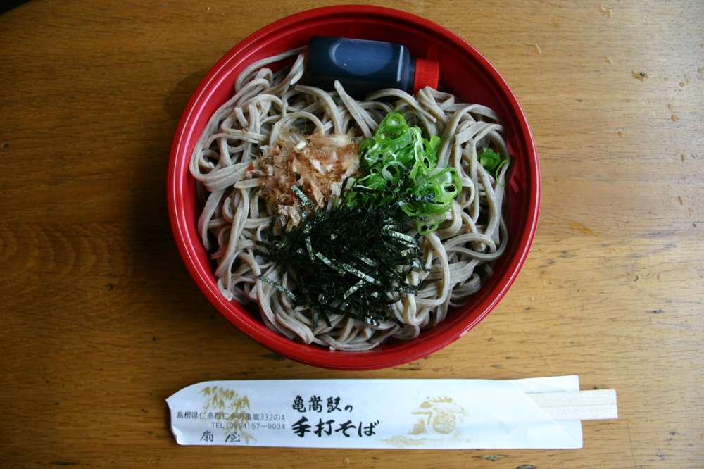 JR木次線を走るトロッコ列車「奥出雲おろち号」の旅の楽しみの一つが、この亀嵩駅扇屋の『そば弁当』。