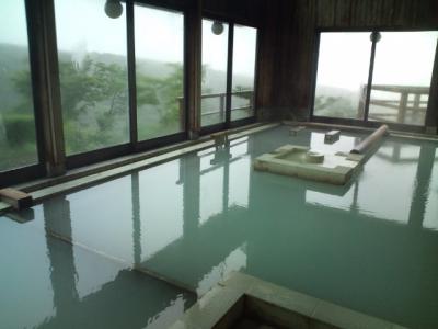 宿泊棟にある大浴場は、白濁した弱硫黄泉で、内湯と露天風呂があるそうです。