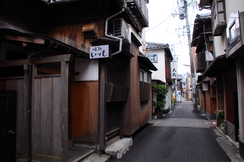 かつて『柳都』と呼ばれた江戸時代から料亭が軒を連ねていた街。古町芸妓の名は、全国に伝わっていたそうです。この界隈には、戦前の建物が数多く残り、その中には三業(料亭、茶屋、置屋)建築のものが十数棟もあり、現在でも料亭として営業しているほか、改修されお洒落な飲食店となっているものもあります。中でも、弘化3年(1846)創業の『鍋茶屋』は規模が大きく、広大に敷地に建つ7棟が国の登録文化財になっています。狭い路地がたくさんあり、町屋建築とは違う趣のある建物を見ながらのそぞろ歩きは面白いです。