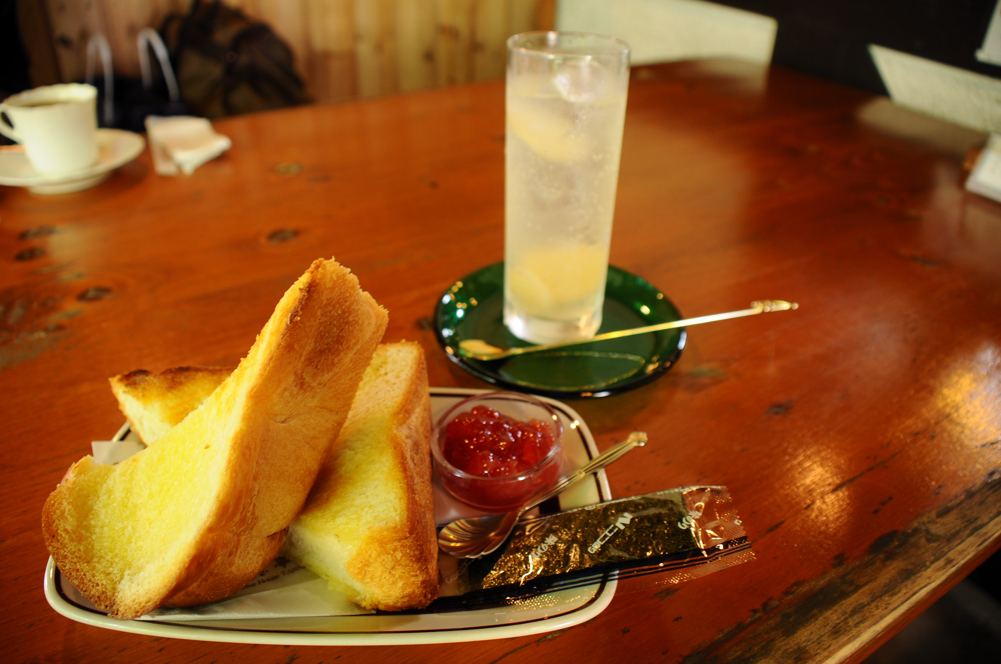 軽井沢での列車待ちの合間に、昼食で利用しました。ふらりと歩いていて、外観に惹かれて入ってみたところ、店内の雰囲気も良く、通された庭に設けられたテーブル席も素敵でした。基本は喫茶店なので、食事メニューは少ないです。でも、頼んだ『厚焼きトースト(750円)』は、しっとり感とイギリスパンらしい食感が楽しめました。トッピングは、イチゴジャムとなぜか味付け海苔。この味付け海苔は、いまひとつでした。自家製のジンジャーエールは、しょうがのスライスが入っていて、これを最後に食べるのがおすすめです。なお、爽やかな季節は、庭の席がおすすめです。