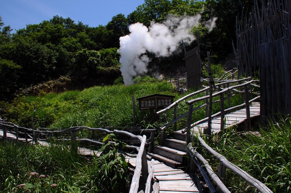 新野地温泉の一軒宿で、日帰り入浴も可能です。日帰り入浴は、一階の男女別内湯と野天風呂となります。この宿の最大の魅力が、その野天風呂。宿の裏手にあり、湯舟までは木道が敷かれ、何とも開放的です。木道は途中で別れ、右手が女性、左手奥が男性用です。湯舟は野趣満点で、素晴らしいの一言。湯も白濁の硫黄泉を満喫できます。ただ、開放感があり過ぎるので、日差しの強い季節には日焼けに要注意です。なお、二階大浴場は宿泊者専用となっています。※現在、日帰り入浴の受入を休止している可能性がありますので、確認したほうが良いと思います。