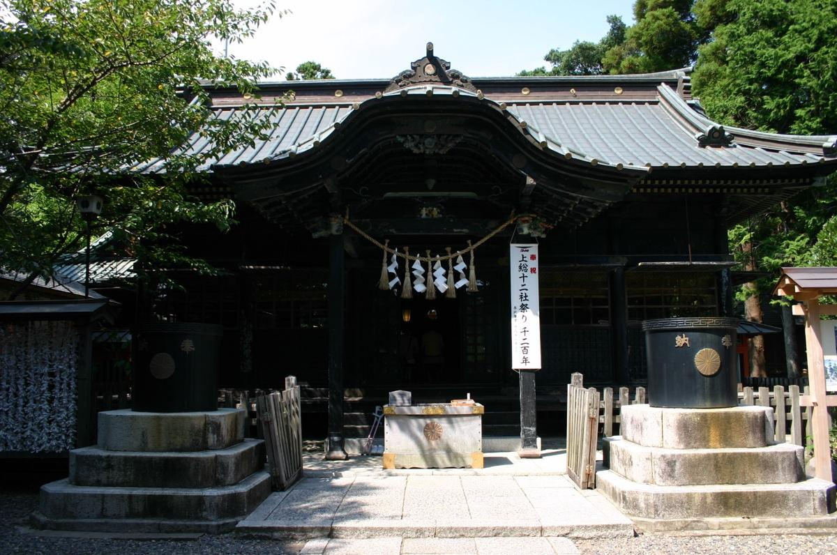 延喜式神名帳に明神大社として名を連ねる社で、上総国の一宮とされています。本殿は、江戸時代中期に建立されたもので、境内にはイヌマキの群生があり、独特な風情を醸し出しています。鳥居の前には蔵造りの建物があり、喫茶となっていますので休憩に使えます。また、近くの交差点の角には、『みかん大福』で知られる『角八本店』があります。なお、すぐ南にある観明寺も色々と見どころがあります。