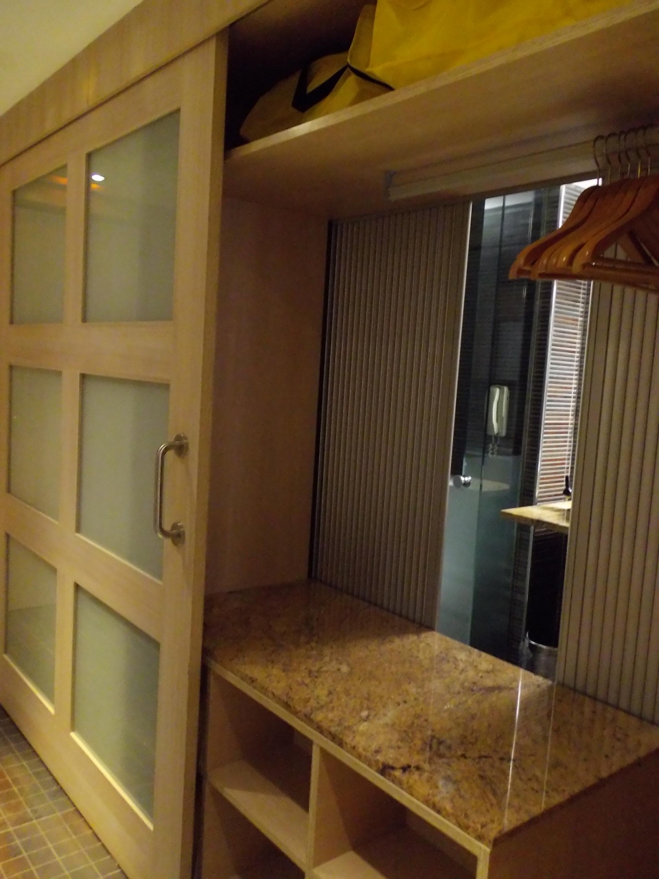 洋服掛けが廊下側とバスルーム側両方から開けられるようになっていましたが、一見便利なようでしたが、逆に湿気が心配でした。