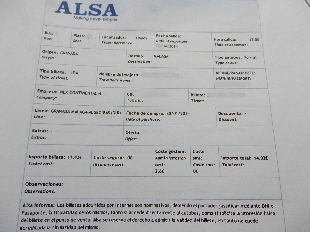 グラナダからマラガまでは長距離バスで移動します。