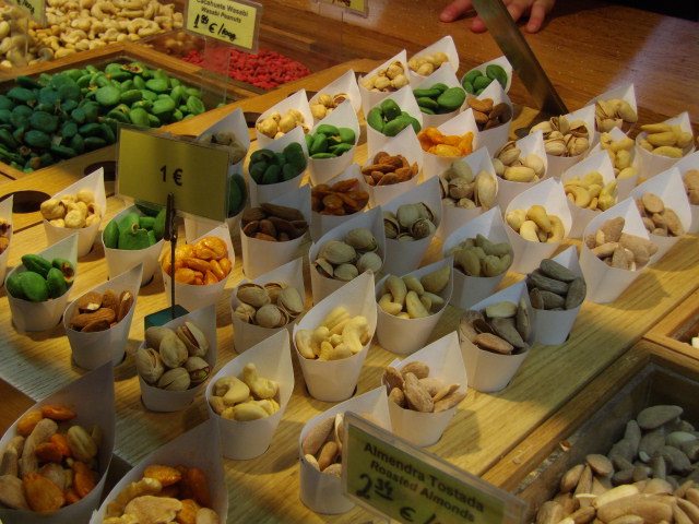 市場は思ったより狭く、どこも同じようにタパスやお菓子を観光客用に販売していて、バルセロナのサンジョセップ市場に比べると整いすぎていて市場の雰囲気ではありませんでした。- 旅行時期