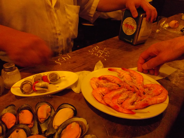 それでもいくつかのタパスとビールを買って、やっと席を見つけ座ることができましたが、人が多すぎて、みんな席を探している様子なので落ち着いて味わうことはできませんでした。