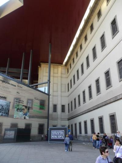 平日の17時以降と土曜日14時半以降、日曜日と特定の日が入場無料ということでしたので、ちょうど土曜日の午後マドリードに入ったので、行ってみることにしました。 ソフィア王妃芸術センターにはすでに列ができていましたが、そんなに長くなかったので私たちも並びました。 しばらくすると列が動き出し、入口で絵が印刷されたきれいな整理券を貰い中に入りました。 ほとんどの人がそうでしょうが、目的はピカソのゲルニカです。 ゲルニカは写真は撮れませんが、写真撮影できる作品もありました。 この偉大な作品を無料で心ゆくまで見ることができるなんてすごいなと思いました。