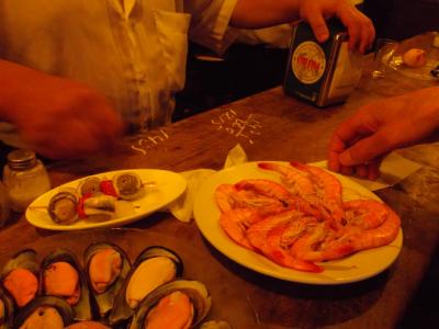 それからカウンターの空いているほんの少しのところに無理やり入れてもらいワインを注文しました。お勘定は木のカウンタ―の上にチョークで金額を書いていきます。それも情緒があっていい雰囲気でした。- 旅行時期
