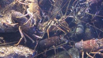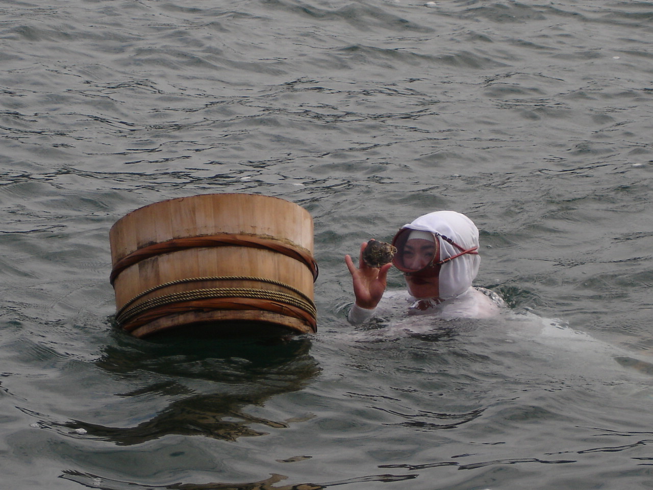 素潜りで約6メートル程下の海底から、貝を捕る様子を見せてくれます。